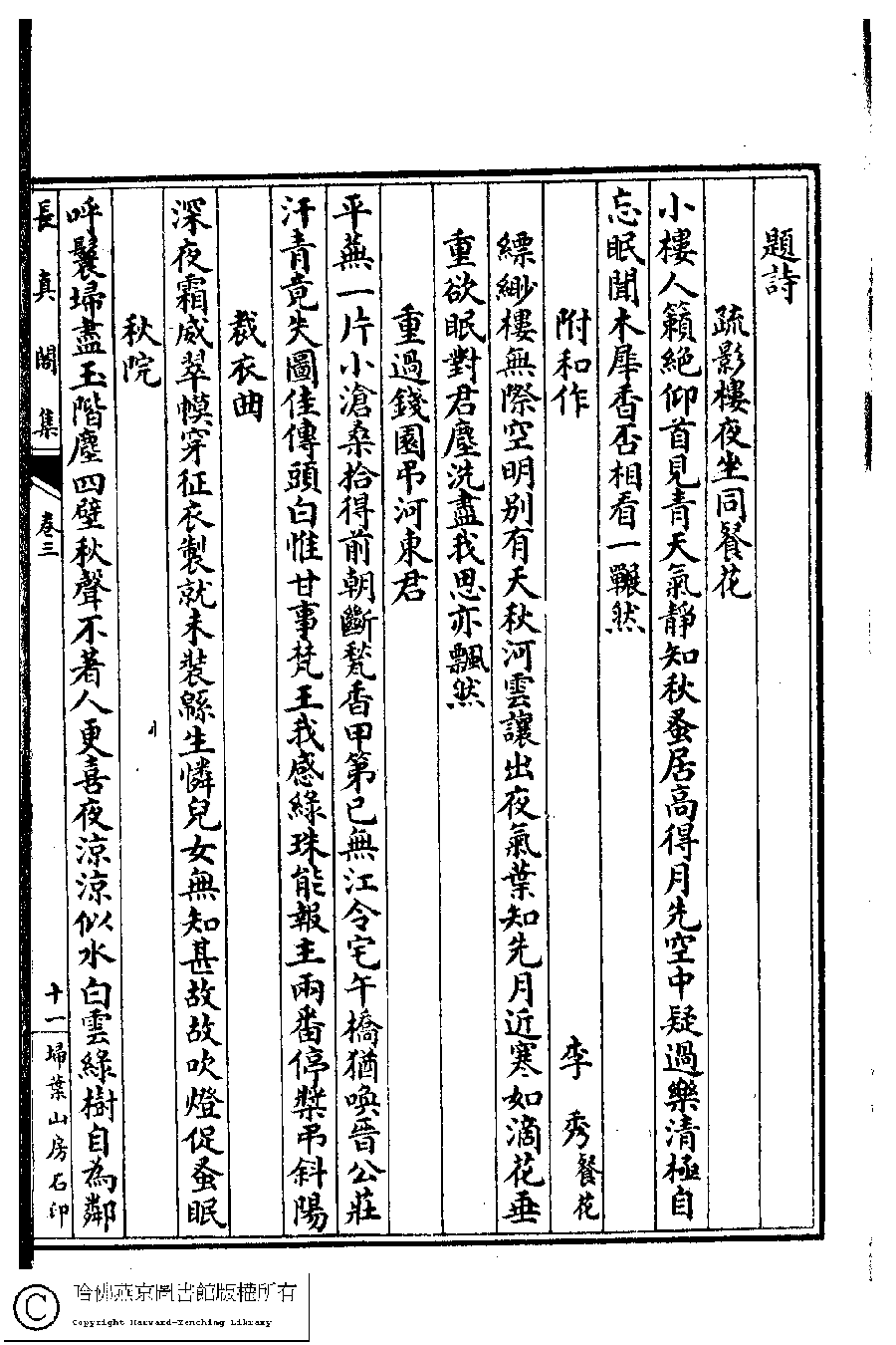 | Appears in: Chang zhen ge ji: 7 juan, shi yu 1 juan (by Xi Peilan, Qing dynasty) |