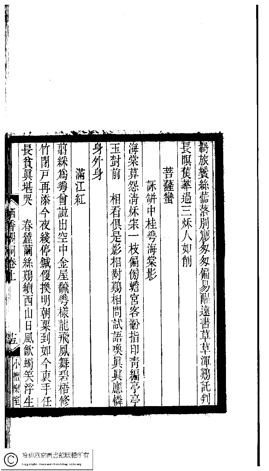 | Appears in: Xiao tan luan shi hui ke gui xiu ci: 10 ji 100 zhong 100 juan (edited by Xu Naichang, Qing dynasty): Qi xiang ge ci: 2 juan |
