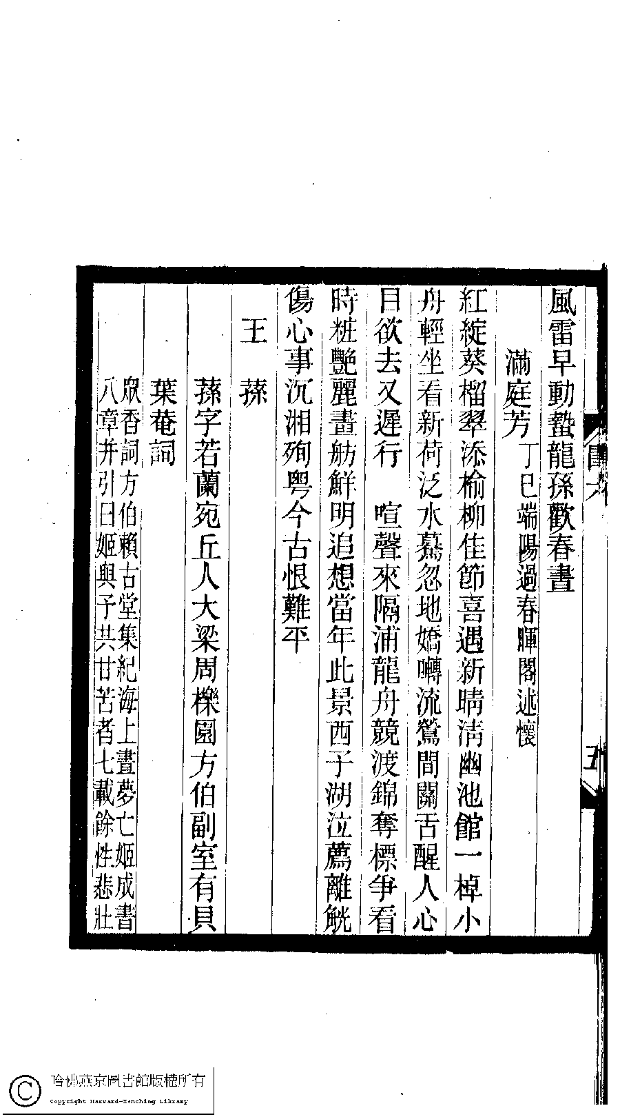 | (PRINT FRIENDLY VERSION) 閨秀詞鈔﹕十六卷(清徐乃昌輯)。清宣統元年(1909)小檀欒室刻本。 ![]() Page : 6.7a | click for larger image | 閨秀詞鈔﹕十六卷(清徐乃昌輯)。清宣統元年(1909)小檀欒室刻本。![]() Page : 6.6b | click for larger image | 閨秀詞鈔﹕十六卷(清徐乃昌輯)。清宣統元年(1909)小檀欒室刻本。![]() Page : 6.6a | click for larger image | 閨秀詞鈔﹕十六卷(清徐乃昌輯)。清宣統元年(1909)小檀欒室刻本。![]() Page : 6.5b | click for larger image | Back |