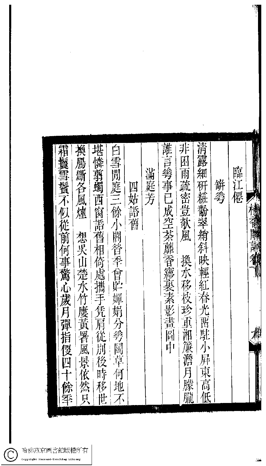 | Appears in: Xiao tan luan shi hui ke gui xiu ci: 10 ji 100 zhong 100 juan (edited by Xu Naichang, Qing dynasty): Qi xiang ge ci: 2 juan |