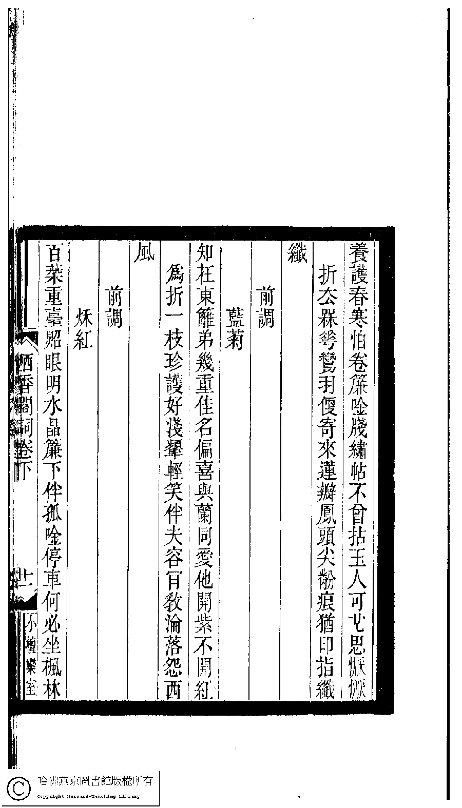 | Appears in: Xiao tan luan shi hui ke gui xiu ci: 10 ji 100 zhong 100 juan (edited by Xu Naichang, Qing dynasty): Qi xiang ge ci: 2 juan |