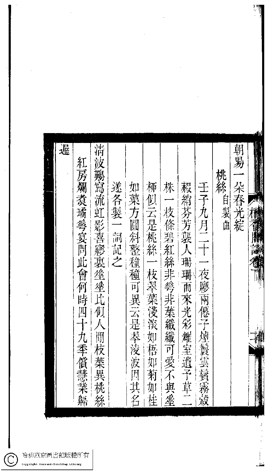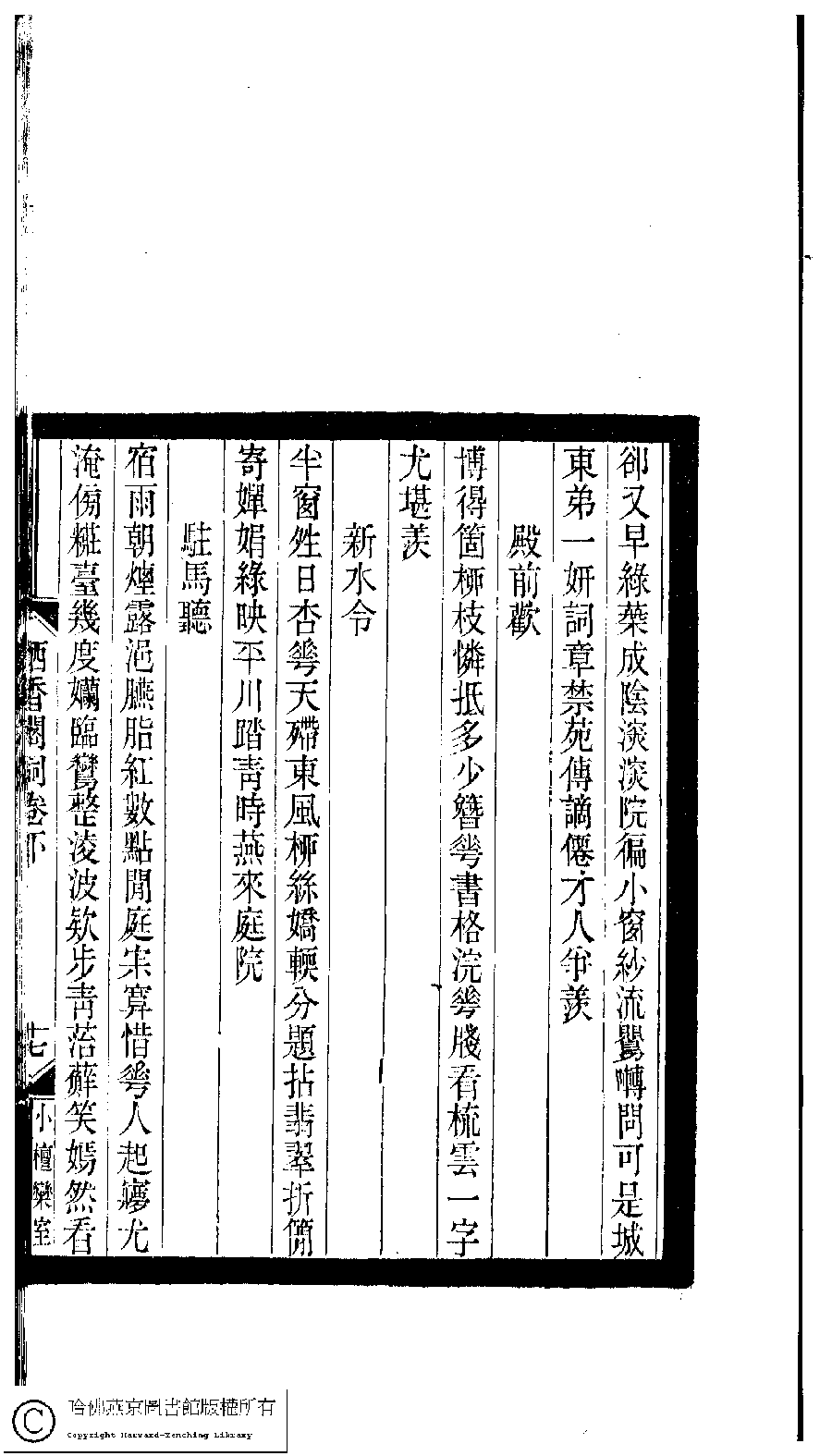 | Appears in: Xiao tan luan shi hui ke gui xiu ci: 10 ji 100 zhong 100 juan (edited by Xu Naichang, Qing dynasty): Qi xiang ge ci: 2 juan |