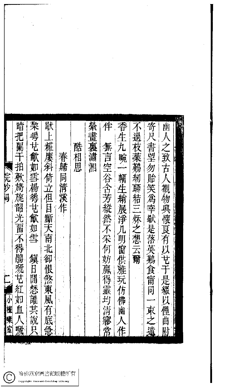| Appears in: Xiao tan luan shi hui ke gui xiu ci: 10 ji 100 zhong 100 juan (edited by Xu Naichang, Qing dynasty): Huan sha ci: 1 juan |