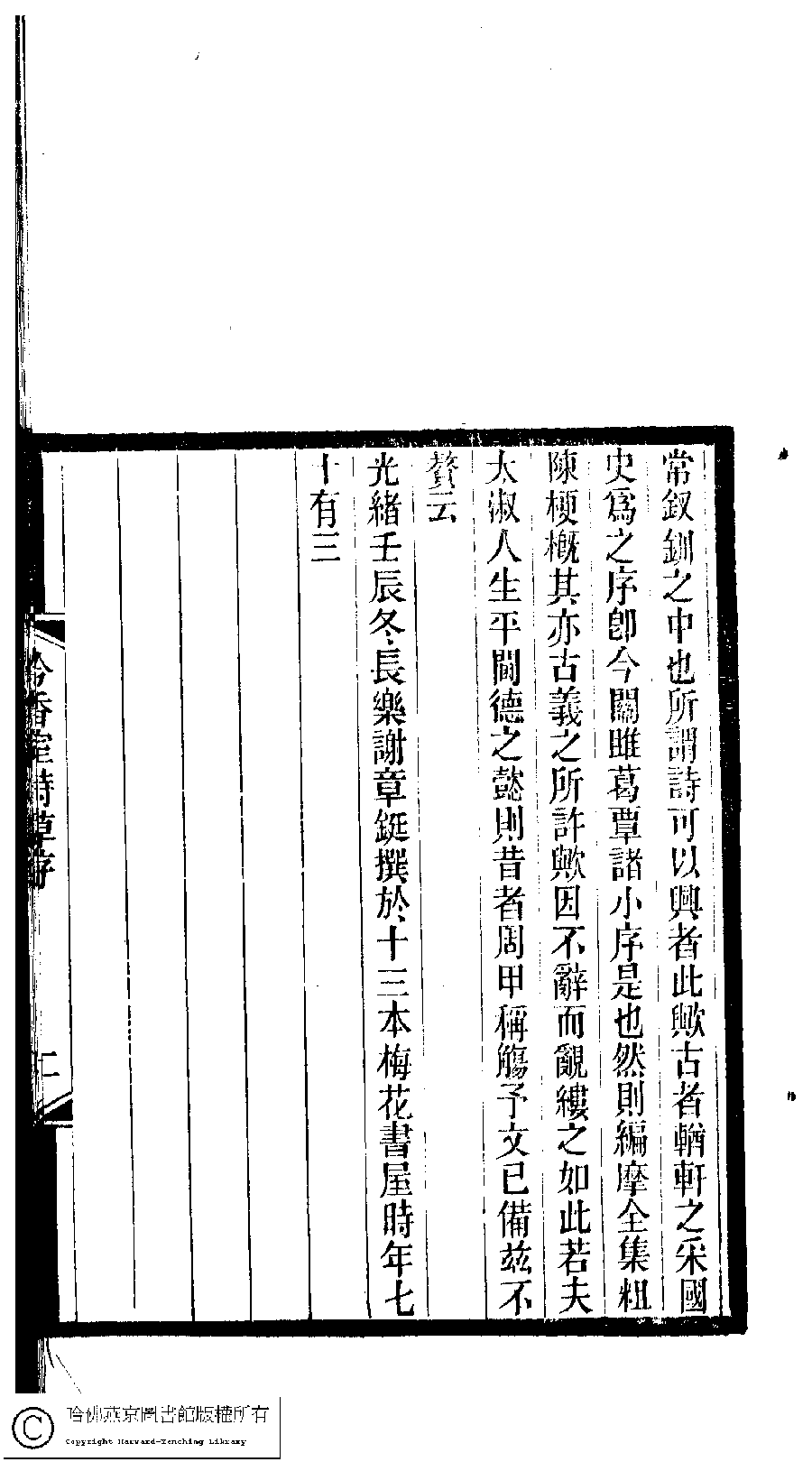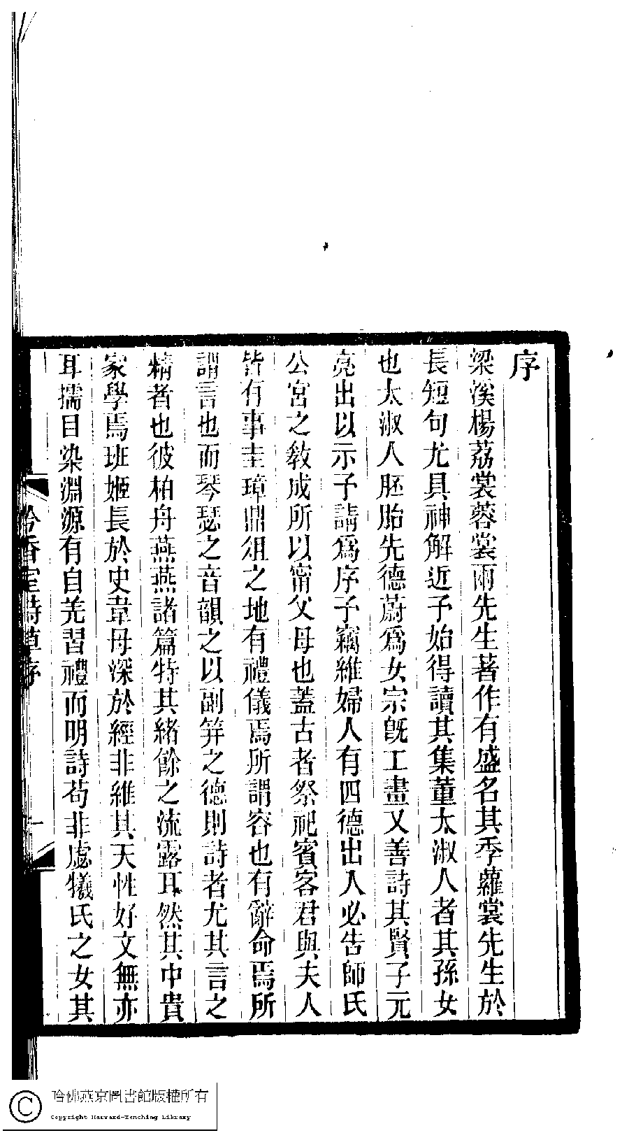 | (PRINT FRIENDLY VERSION) 吟香室詩草﹕二卷﹐續刻﹕一卷﹐附刻﹕一卷(清楊蘊輝撰)。清光緒二十三年(1897)刻本。 ![]() Page : 序.1, 2a | click for larger image | 吟香室詩草﹕二卷﹐續刻﹕一卷﹐附刻﹕一卷(清楊蘊輝撰)。清光緒二十三年(1897)刻本。![]() Page : 序.1, 2a | click for larger image | 吟香室詩草﹕二卷﹐續刻﹕一卷﹐附刻﹕一卷(清楊蘊輝撰)。清光緒二十三年(1897)刻本。![]() Page : 序.1, 1b | click for larger image | 吟香室詩草﹕二卷﹐續刻﹕一卷﹐附刻﹕一卷(清楊蘊輝撰)。清光緒二十三年(1897)刻本。![]() Page : 序.1, 1a | click for larger image | Back |