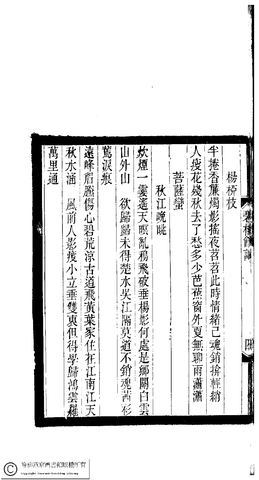 | (PRINT FRIENDLY VERSION) 小檀欒室彙刻閨秀詞﹕十集一百種一百卷(清徐乃昌輯) : 碧桃館詞﹕一卷。清光緒二十二年(1896)南陵徐氏刻本。 ![]() Page : 碧桃館詞.4b | click for larger image | Back |