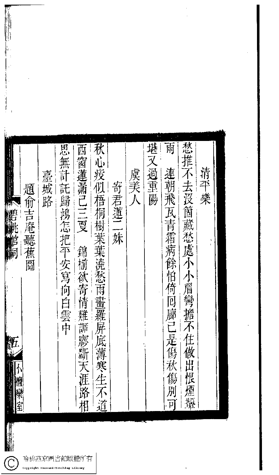 | (PRINT FRIENDLY VERSION) 小檀欒室彙刻閨秀詞﹕十集一百種一百卷(清徐乃昌輯) : 碧桃館詞﹕一卷。清光緒二十二年(1896)南陵徐氏刻本。 ![]() Page : 碧桃館詞.5a | click for larger image | Back |