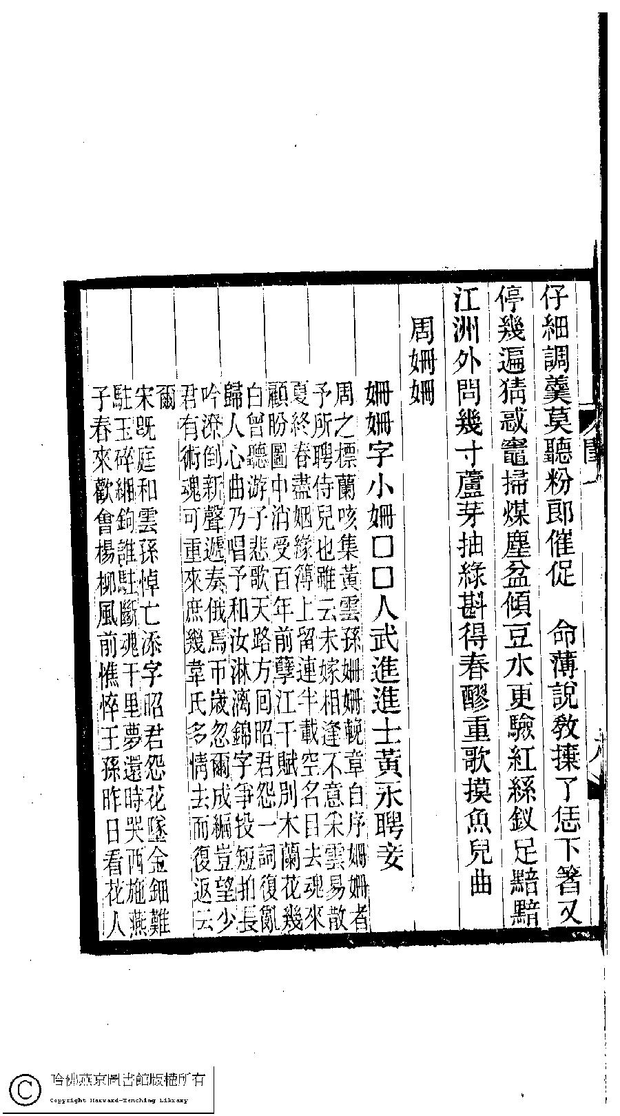 | (PRINT FRIENDLY VERSION) 閨秀詞鈔﹕十六卷(清徐乃昌輯)。清宣統元年(1909)小檀欒室刻本。 ![]() Page : 7.9a | click for larger image | 閨秀詞鈔﹕十六卷(清徐乃昌輯)。清宣統元年(1909)小檀欒室刻本。![]() Page : 7.8b | click for larger image | Back |