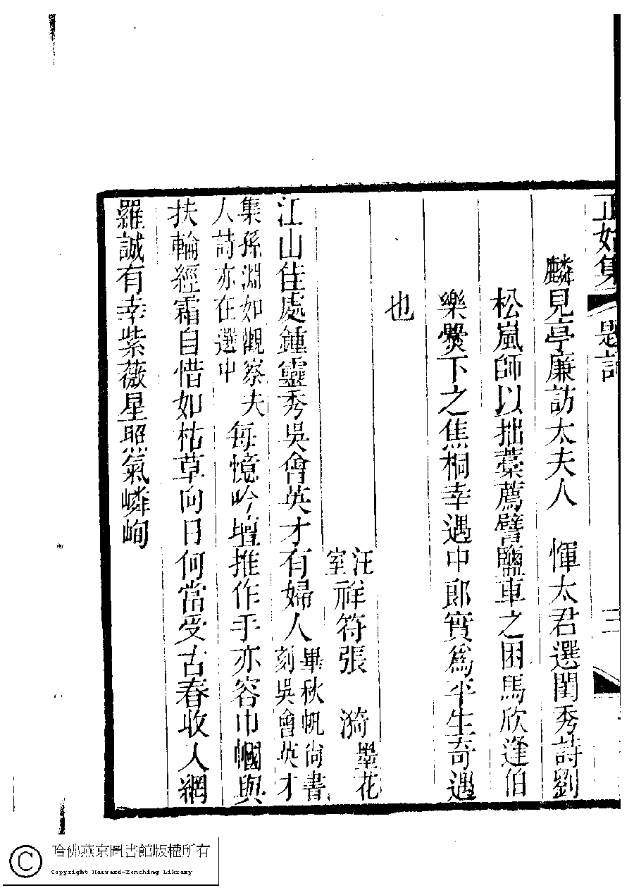 | (PRINT FRIENDLY VERSION) 國朝閨秀正始集﹕二十卷﹐附錄﹕一卷﹐補遺﹕一卷﹐又附題詞﹕一卷(清惲珠輯)。清道光十一年(1831)紅香館刻本。 ![]() Page : 題辭.3b | click for larger image | Back |