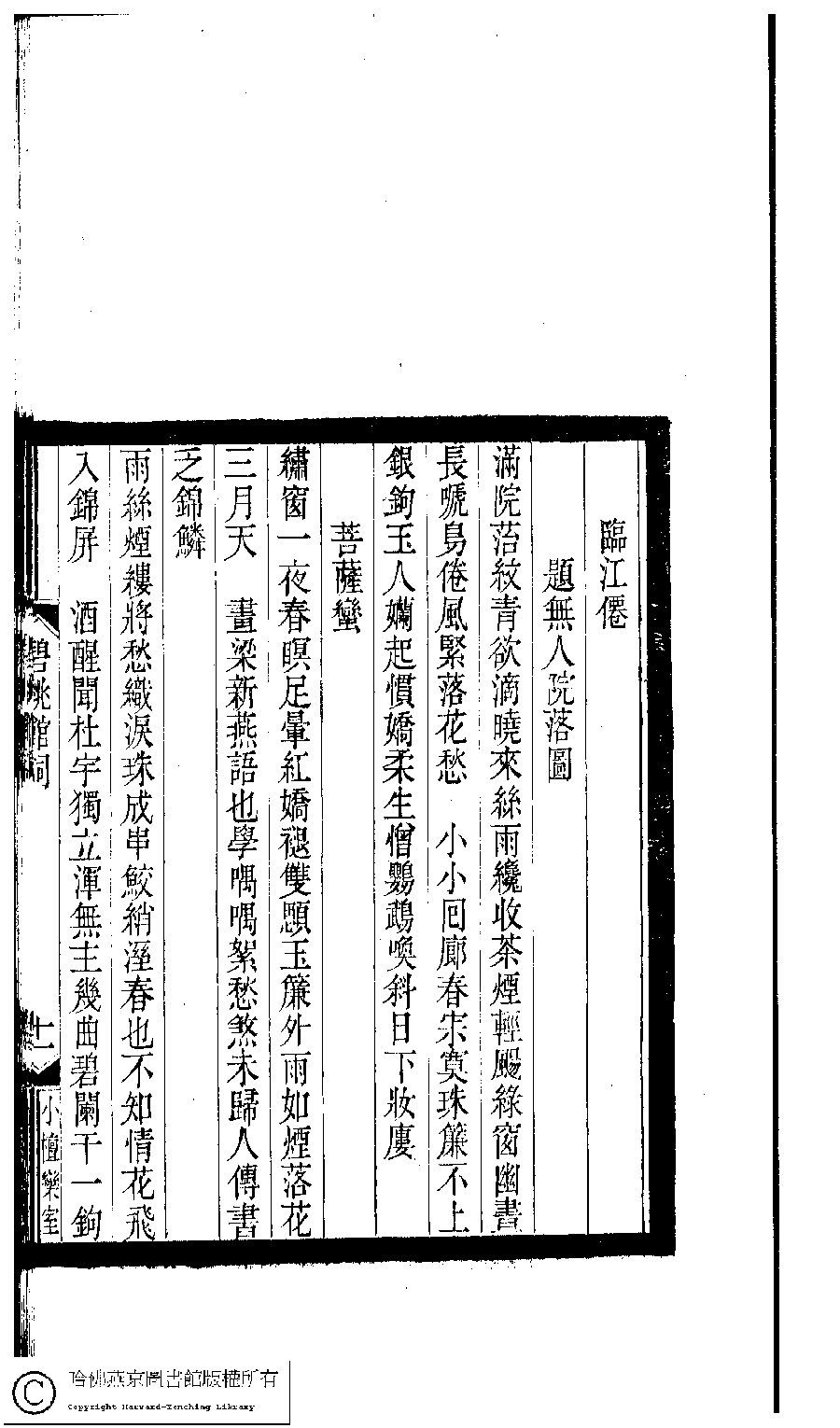 | Appears in: Xiao tan luan shi hui ke gui xiu ci: 10 ji 100 zhong 100 juan (edited by Xu Naichang, Qing dynasty): Bi tao guan ci: 1 juan |
