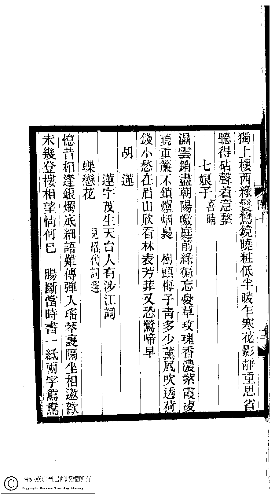 | (PRINT FRIENDLY VERSION) 閨秀詞鈔﹕十六卷(清徐乃昌輯)。清宣統元年(1909)小檀欒室刻本。 ![]() Page : 7.12b | click for larger image | Back |