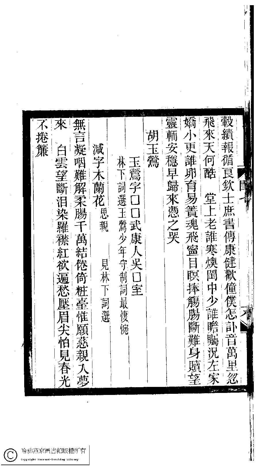| (PRINT FRIENDLY VERSION) 閨秀詞鈔﹕十六卷(清徐乃昌輯)。清宣統元年(1909)小檀欒室刻本。 ![]() Page : 7.18b | click for larger image | Back |