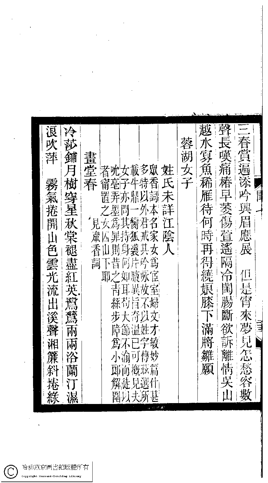 | (PRINT FRIENDLY VERSION) 閨秀詞鈔﹕十六卷(清徐乃昌輯)。清宣統元年(1909)小檀欒室刻本。 ![]() Page : 7.25b | click for larger image | Back |