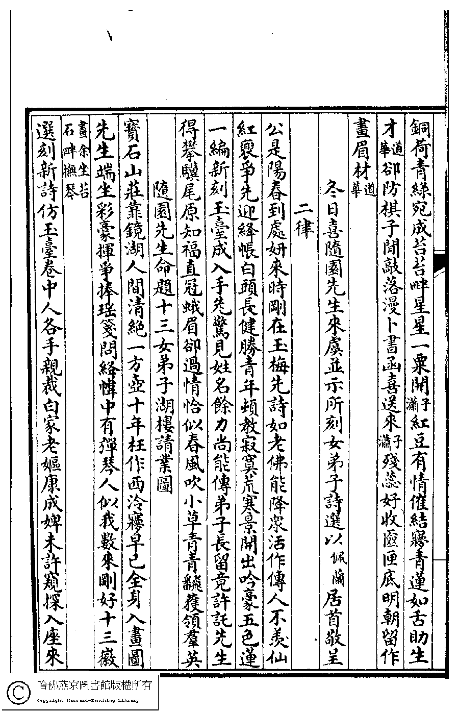 Poem [Dong ri xi Suiyuan xian sheng lai Yu bing shi suo ke nü di zi shi xuan yi Peilan ju shou jing cheng er lü]