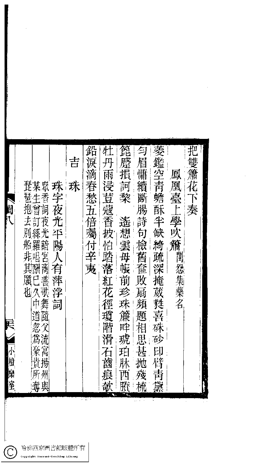 | (PRINT FRIENDLY VERSION) 閨秀詞鈔﹕十六卷(清徐乃昌輯)。清宣統元年(1909)小檀欒室刻本。 ![]() Page : 8.26a | click for larger image | Back |