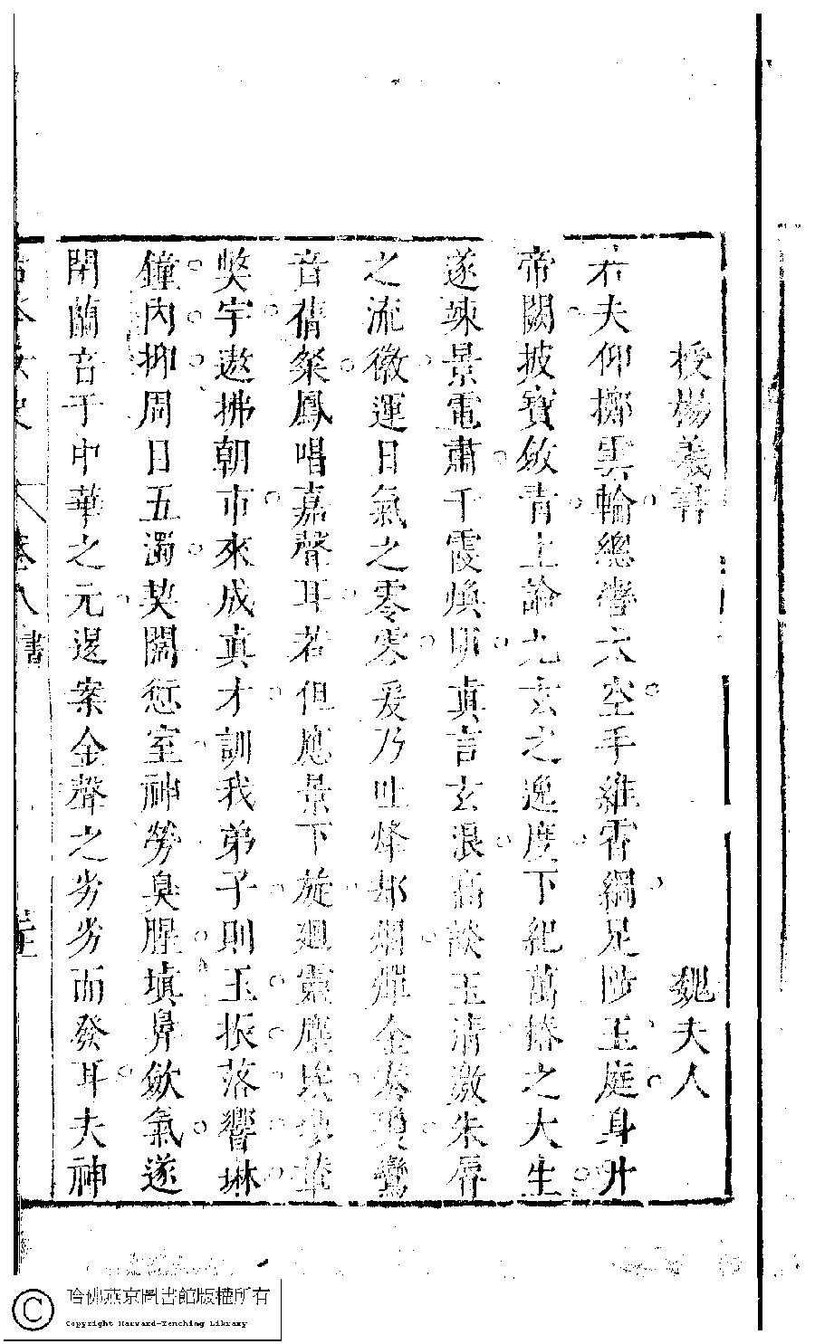 | (PRINT FRIENDLY VERSION) 古今女史﹕十二卷﹐詩集﹕八卷﹐附姓氏字里詳節﹕一卷(明趙世杰輯)。明崇禎(1628-1644)問奇閣刻本 ![]() Page : 8.21b | click for larger image | 古今女史﹕十二卷﹐詩集﹕八卷﹐附姓氏字里詳節﹕一卷(明趙世杰輯)。明崇禎(1628-1644)問奇閣刻本![]() Page : 8.21a | click for larger image | Back |