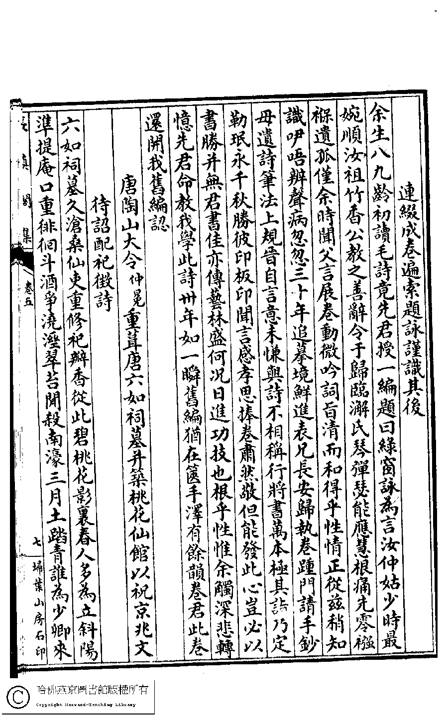 | (PRINT FRIENDLY VERSION) 長真閣集﹕七卷﹐詩餘﹕一卷(清席佩蘭撰)。民國九年(1920)掃葉山房石印本。 ![]() Page : 5.7a | click for larger image | 長真閣集﹕七卷﹐詩餘﹕一卷(清席佩蘭撰)。民國九年(1920)掃葉山房石印本。![]() Page : 5.6b | click for larger image | Back |