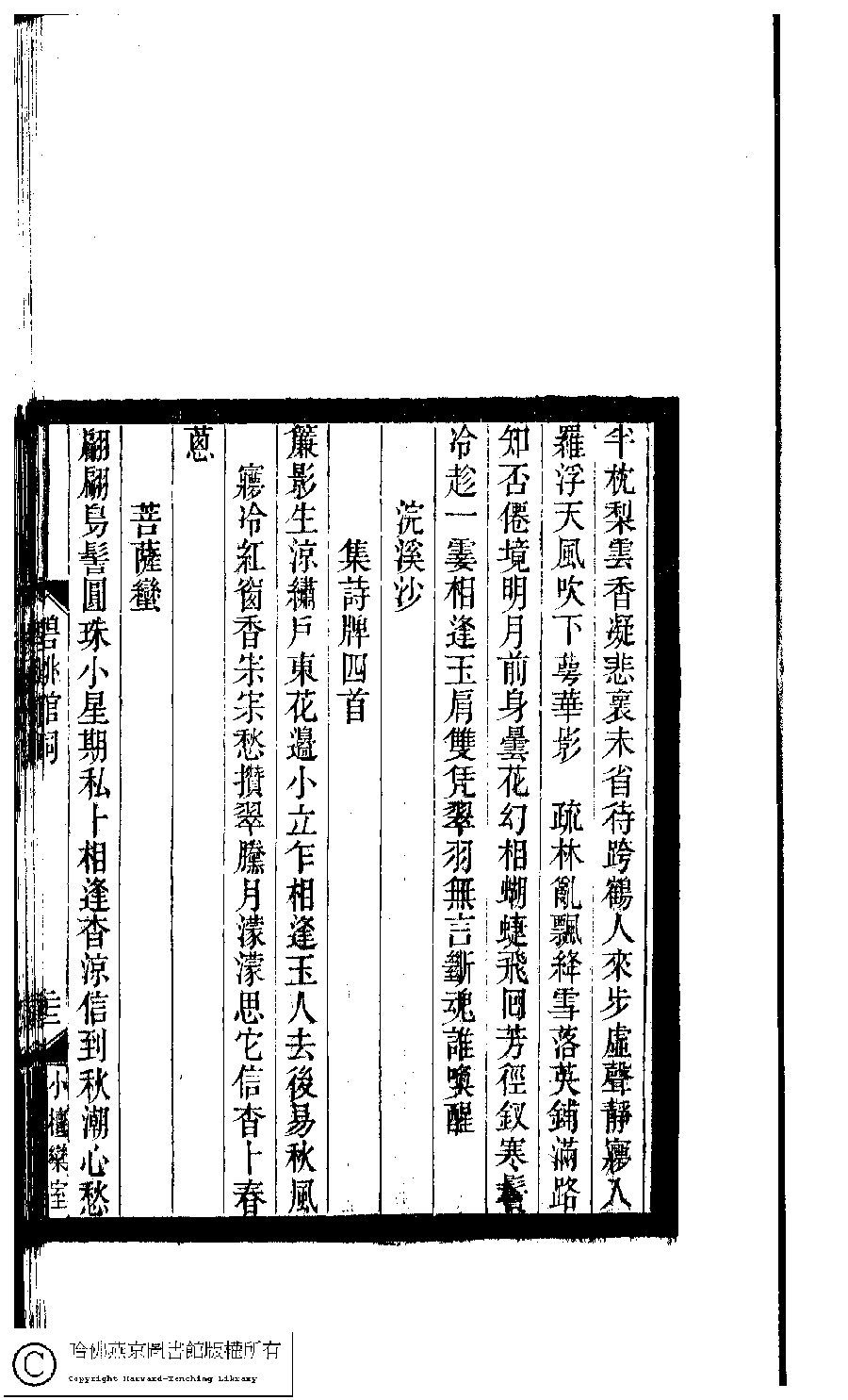 | (PRINT FRIENDLY VERSION) 小檀欒室彙刻閨秀詞﹕十集一百種一百卷(清徐乃昌輯) : 碧桃館詞﹕一卷。清光緒二十二年(1896)南陵徐氏刻本。 ![]() Page : 碧桃館詞.22a | click for larger image | 小檀欒室彙刻閨秀詞﹕十集一百種一百卷(清徐乃昌輯) : 碧桃館詞﹕一卷。清光緒二十二年(1896)南陵徐氏刻本。![]() Page : 碧桃館詞.21b | click for larger image | Back |