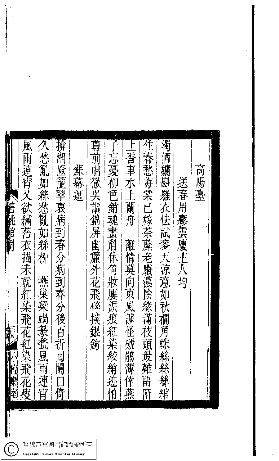 Poem [Gao yang tai : Song chun yong Meng yun lou zhu ren yun]