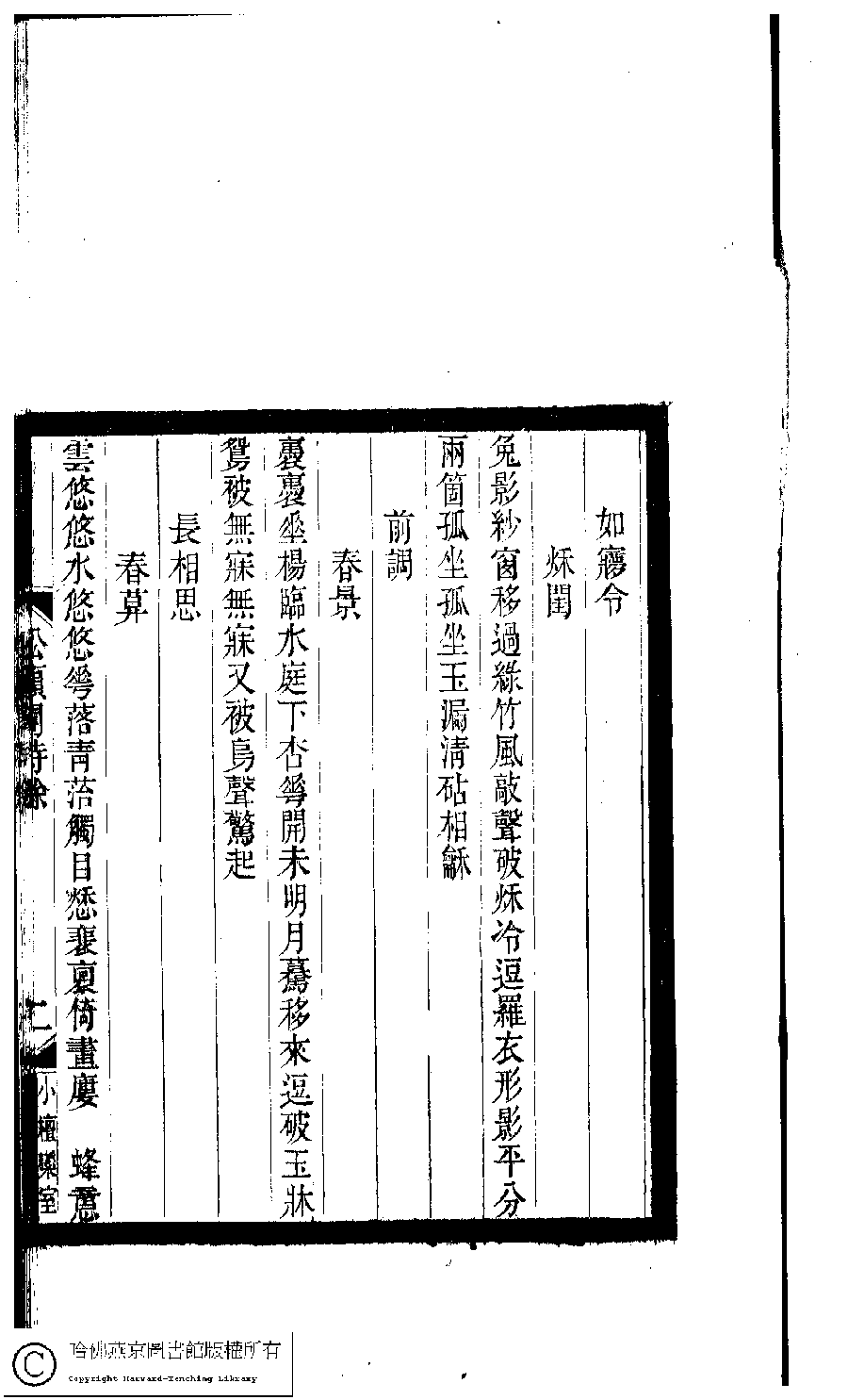 | (PRINT FRIENDLY VERSION) 小檀欒室彙刻閨秀詞﹕十集一百種一百卷(清徐乃昌輯) : 碧桃館詞﹕一卷。清光緒二十二年(1896)南陵徐氏刻本。 ![]() Page : 松籟閣詩餘.2a | click for larger image | Back |