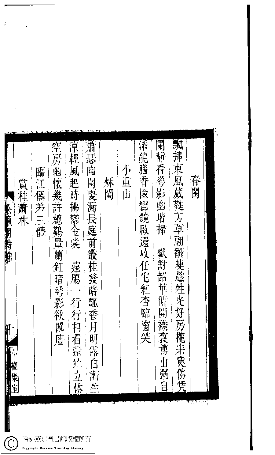 | Appears in: Xiao tan luan shi hui ke gui xiu ci: 10 ji 100 zhong 100 juan (edited by Xu Naichang, Qing dynasty): Song lai ge shi yu: 1 juan |