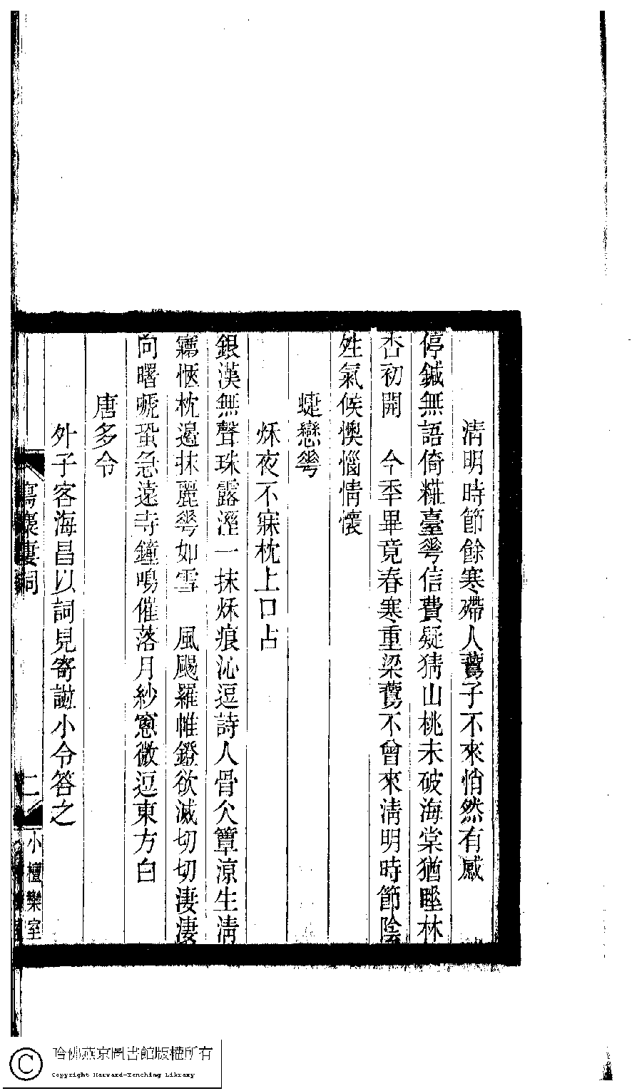 | Appears in: Xiao tan luan shi hui ke gui xiu ci: 10 ji 100 zhong 100 juan (edited by Xu Naichang, Qing dynasty): Xie yun lou ci: 1 juan |