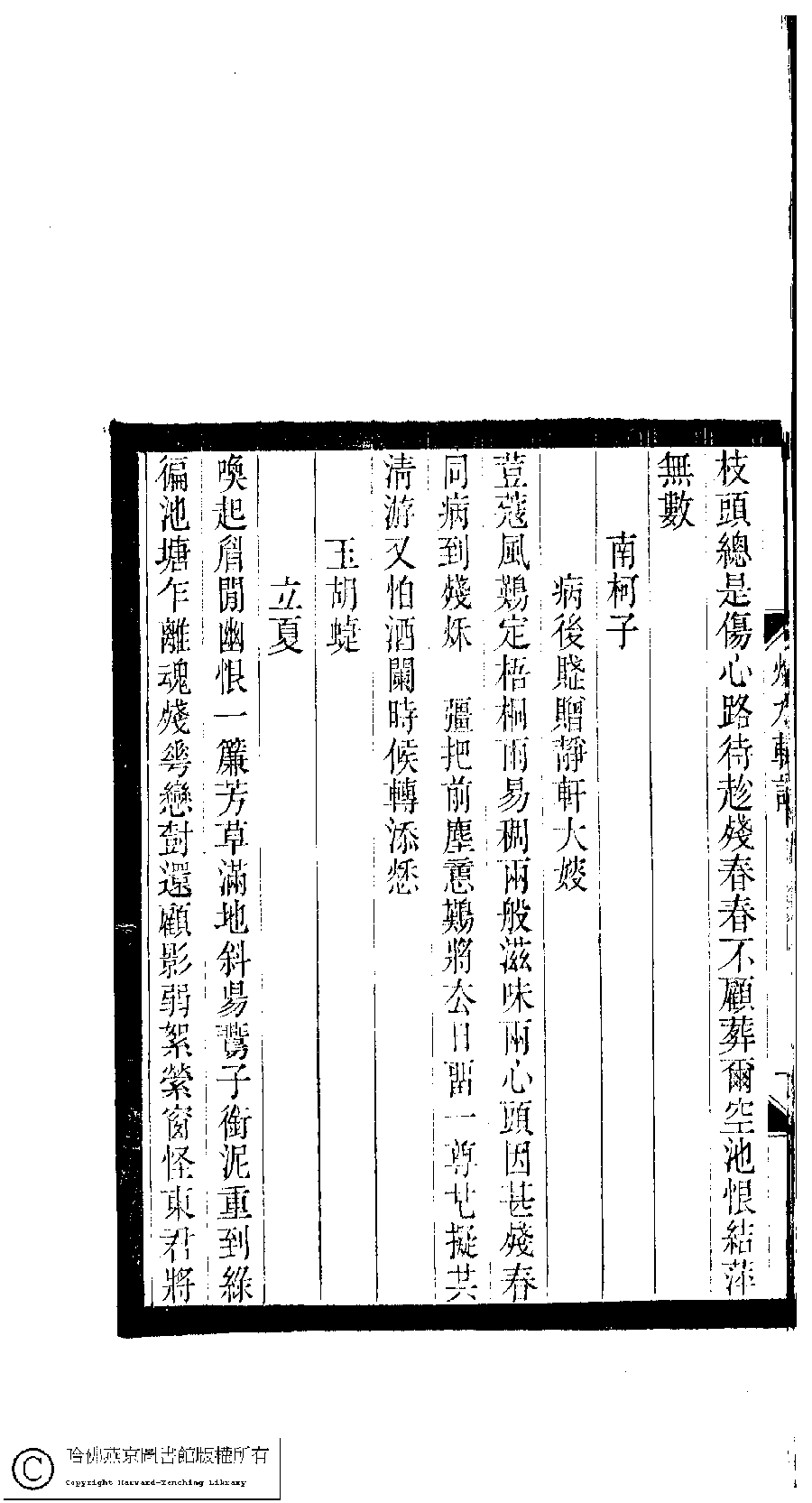 | Appears in: Xiao tan luan shi hui ke gui xiu ci: 10 ji 100 zhong 100 juan (edited by Xu Naichang, Qing dynasty): Qiu shui xuan ci: 1 juan |