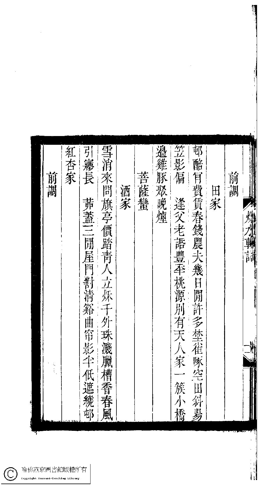 | (PRINT FRIENDLY VERSION) 小檀欒室彙刻閨秀詞﹕十集一百種一百卷(清徐乃昌輯) : 秋水軒詞﹕一卷。清光緒二十二年(1896)南陵徐氏刻本。 ![]() Page : 秋水軒詞.12a | click for larger image | 小檀欒室彙刻閨秀詞﹕十集一百種一百卷(清徐乃昌輯) : 秋水軒詞﹕一卷。清光緒二十二年(1896)南陵徐氏刻本。![]() Page : 秋水軒詞.11b | click for larger image | Back |