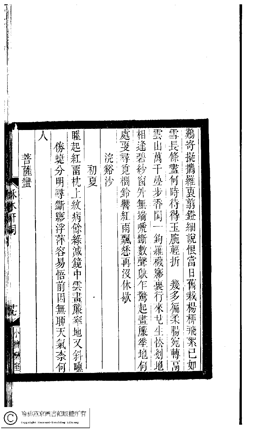 | Appears in: Xiao tan luan shi hui ke gui xiu ci: 10 ji 100 zhong 100 juan (edited by Xu Naichang, Qing dynasty): Qiu shui xuan ci: 1 juan |
