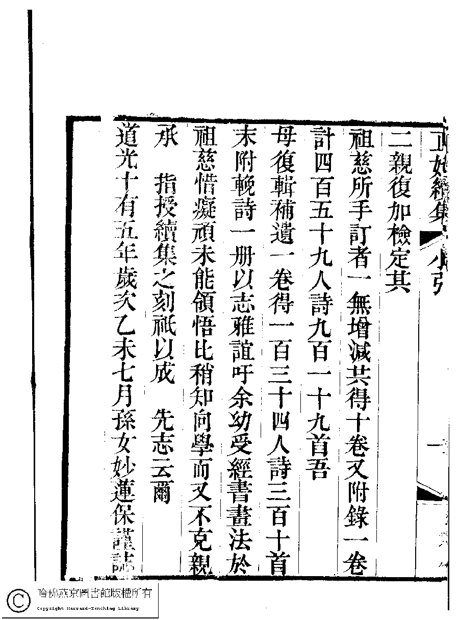 | (PRINT FRIENDLY VERSION) 國朝閨秀正始續集﹕十卷﹐附錄﹕一卷﹐補遺﹕一卷﹐輓詞﹕一卷(清惲珠輯)。清道光十六年(1836)紅香館刻本。 ![]() Page : 小引.1a | click for larger image | 國朝閨秀正始續集﹕十卷﹐附錄﹕一卷﹐補遺﹕一卷﹐輓詞﹕一卷(清惲珠輯)。清道光十六年(1836)紅香館刻本。![]() Page : 小引.1a | click for larger image | Back |
