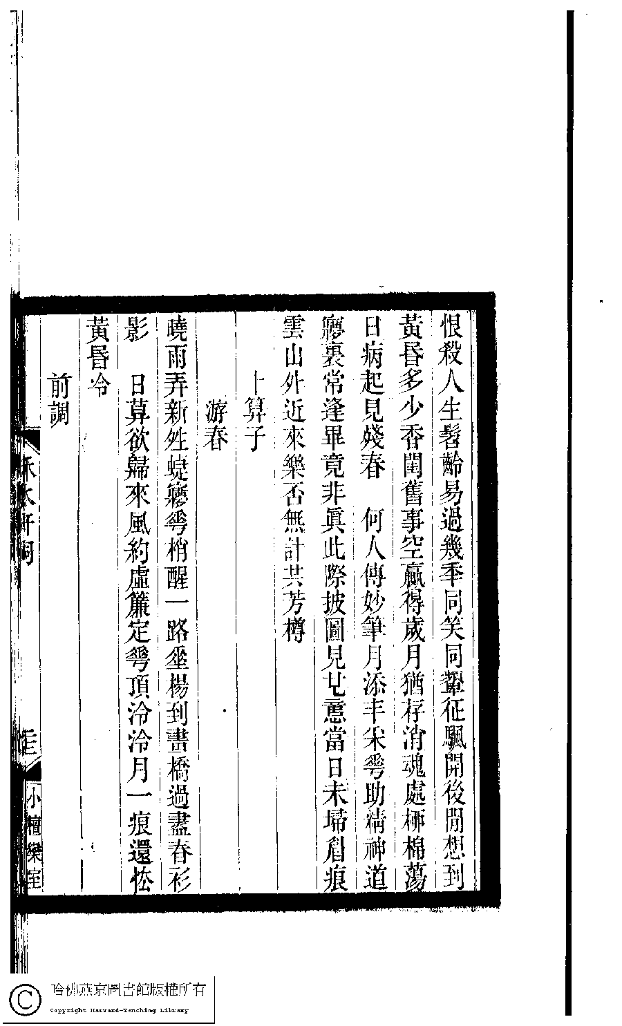 | Appears in: Xiao tan luan shi hui ke gui xiu ci: 10 ji 100 zhong 100 juan (edited by Xu Naichang, Qing dynasty): Qiu shui xuan ci: 1 juan |