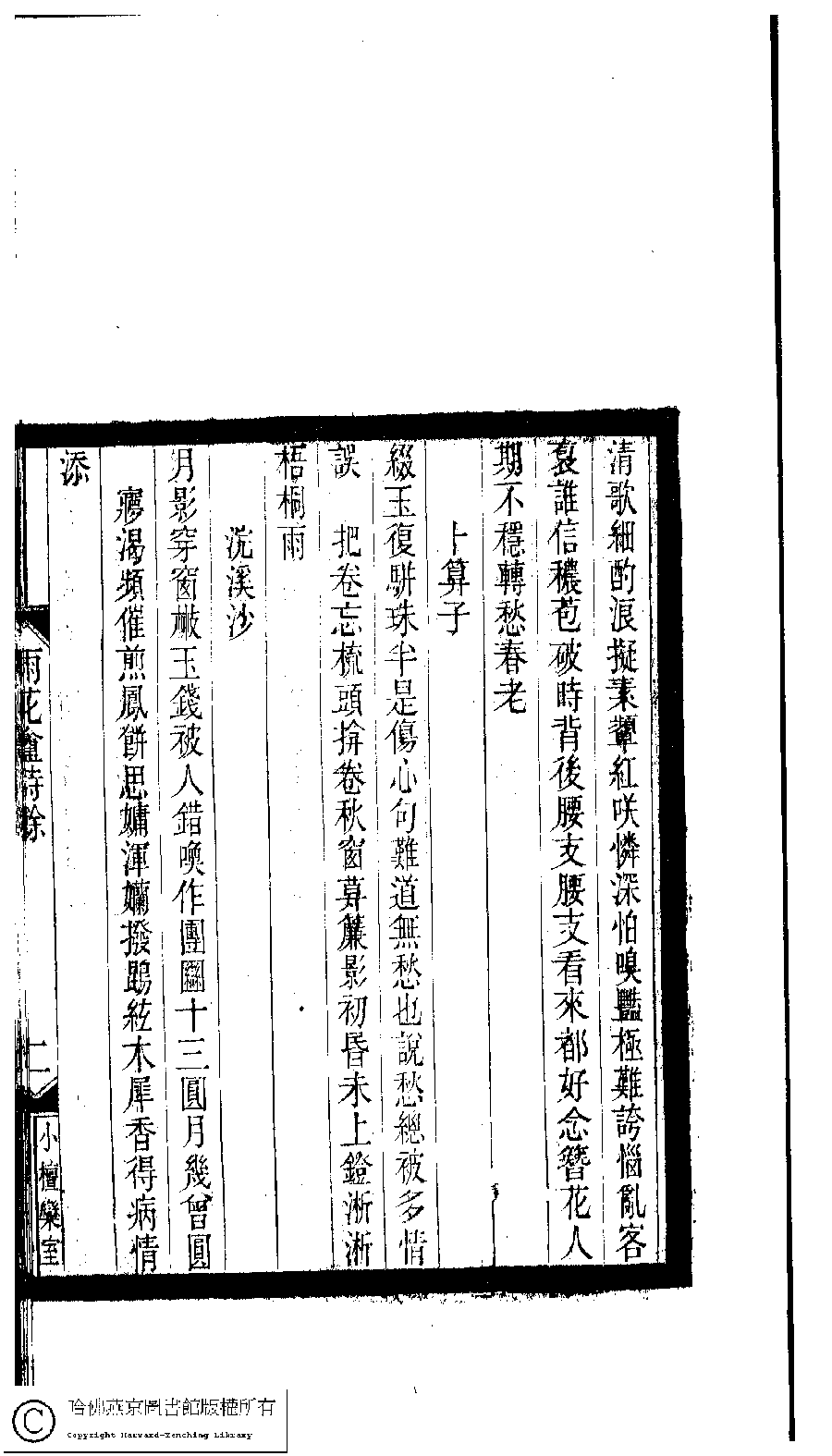 | (PRINT FRIENDLY VERSION) 小檀欒室彙刻閨秀詞﹕十集一百種一百卷(清徐乃昌輯) : 雨花盦詩餘﹕一卷。清光緒二十二年(1896)南陵徐氏刻本。 ![]() Page : 雨花盦詩餘.2b | click for larger image | 小檀欒室彙刻閨秀詞﹕十集一百種一百卷(清徐乃昌輯) : 雨花盦詩餘﹕一卷。清光緒二十二年(1896)南陵徐氏刻本。![]() Page : 雨花盦詩餘.2a | click for larger image | Back |