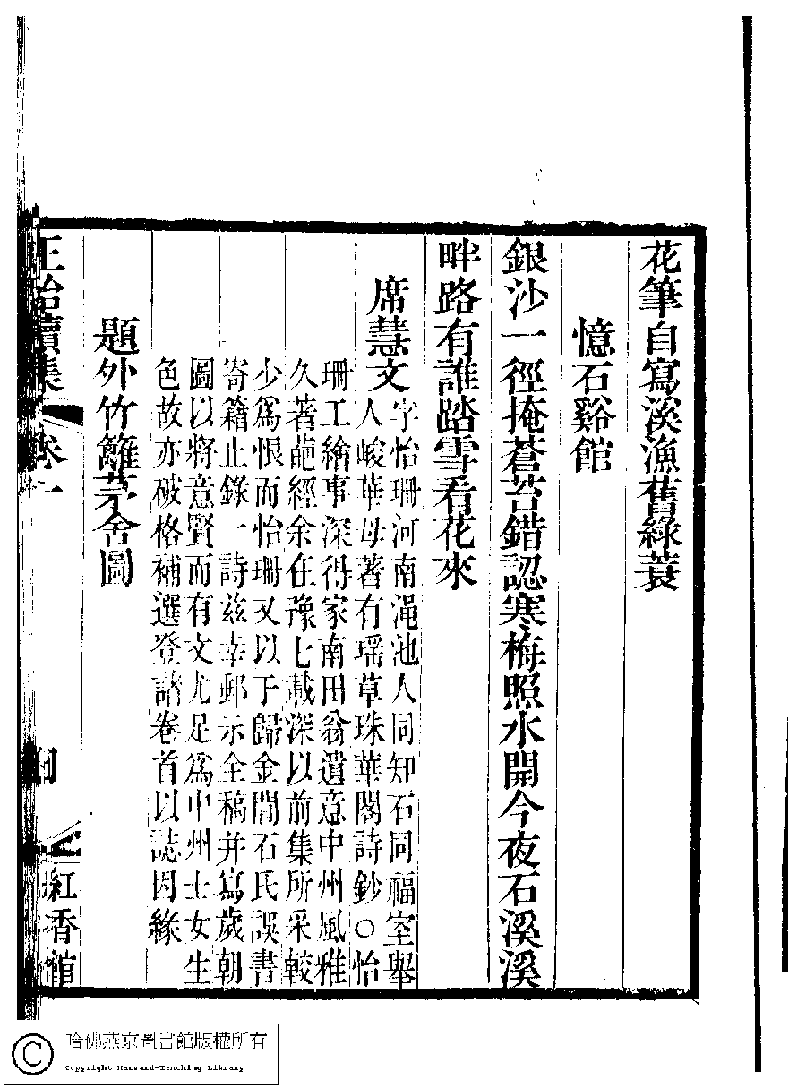 | (PRINT FRIENDLY VERSION) 國朝閨秀正始續集﹕十卷﹐附錄﹕一卷﹐補遺﹕一卷﹐輓詞﹕一卷(清惲珠輯)。清道光十六年(1836)紅香館刻本。 ![]() Page : 1.4a | click for larger image | Back |