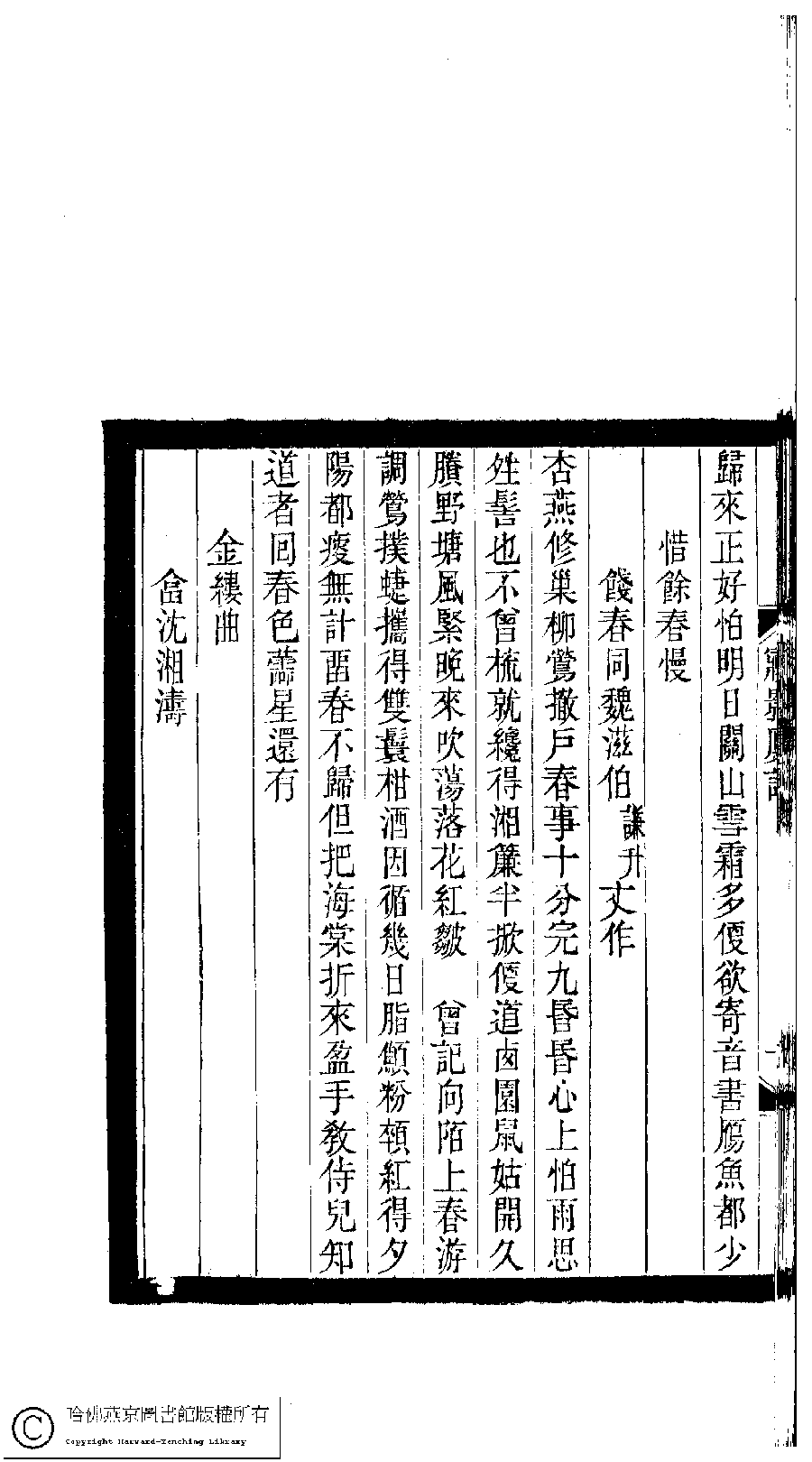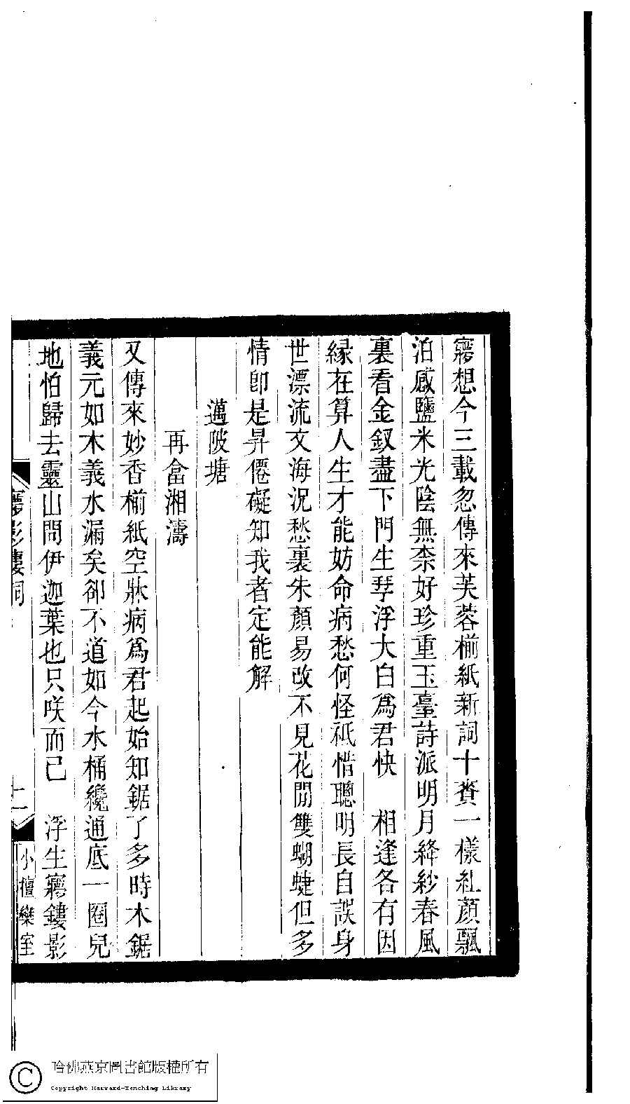 | (PRINT FRIENDLY VERSION) 小檀欒室彙刻閨秀詞﹕十集一百種一百卷(清徐乃昌輯) : 夢影樓詞﹕一卷。清光緒二十二年(1896)南陵徐氏刻本。 ![]() Page : 夢影樓詞.2a | click for larger image | 小檀欒室彙刻閨秀詞﹕十集一百種一百卷(清徐乃昌輯) : 夢影樓詞﹕一卷。清光緒二十二年(1896)南陵徐氏刻本。![]() Page : 夢影樓詞.1b | click for larger image | Back |