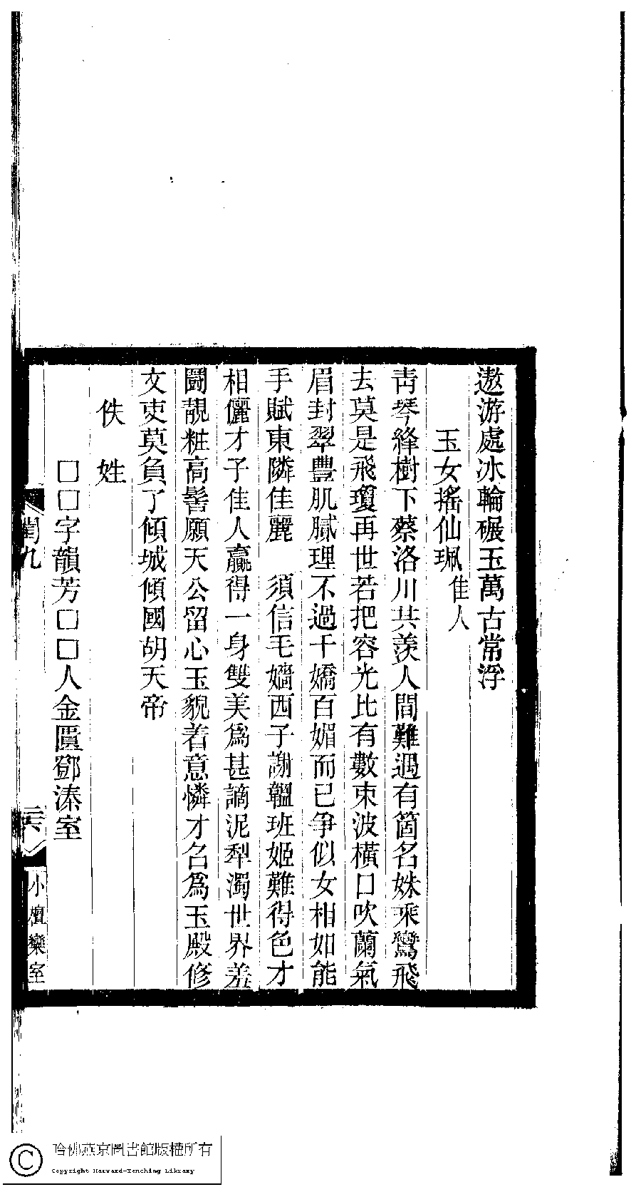 | (PRINT FRIENDLY VERSION) 閨秀詞鈔﹕十六卷(清徐乃昌輯)。清宣統元年(1909)小檀欒室刻本。 ![]() Page : 9.26a | click for larger image | Back |