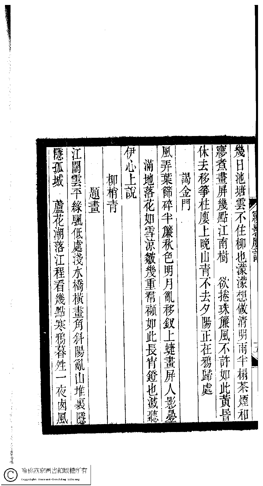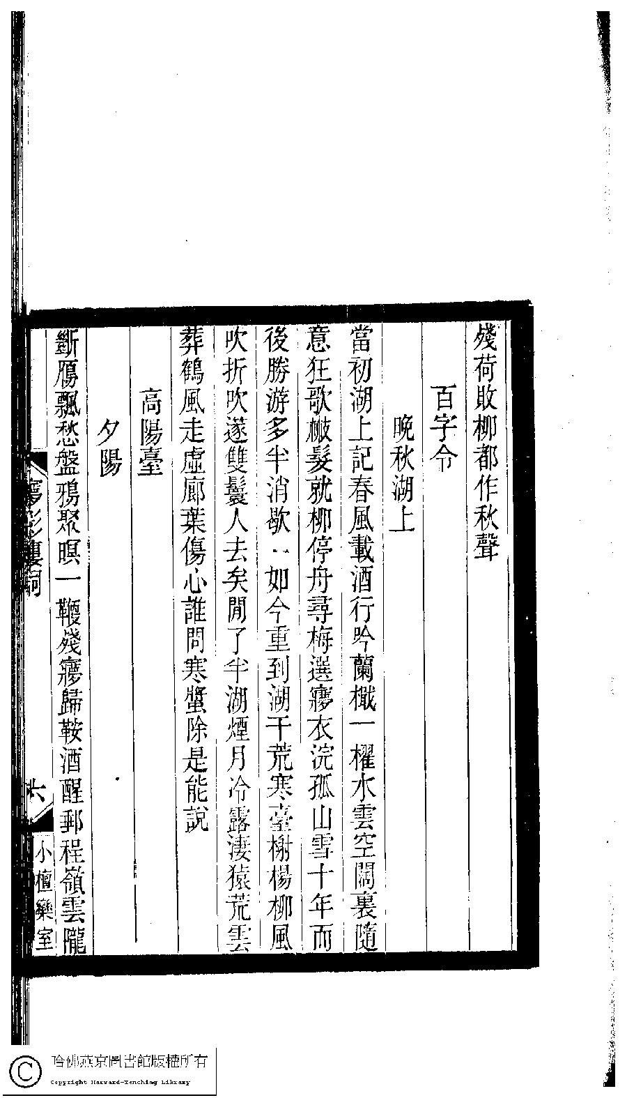 | (PRINT FRIENDLY VERSION) 小檀欒室彙刻閨秀詞﹕十集一百種一百卷(清徐乃昌輯) : 夢影樓詞﹕一卷。清光緒二十二年(1896)南陵徐氏刻本。 ![]() Page : 夢影樓詞.6a | click for larger image | 小檀欒室彙刻閨秀詞﹕十集一百種一百卷(清徐乃昌輯) : 夢影樓詞﹕一卷。清光緒二十二年(1896)南陵徐氏刻本。![]() Page : 夢影樓詞.5b | click for larger image | Back |