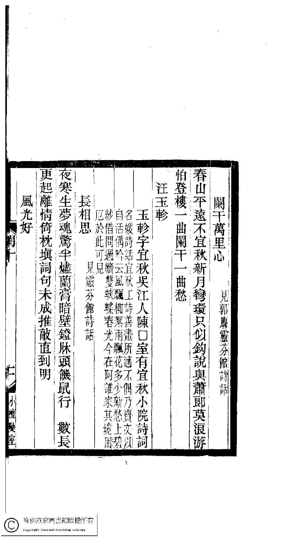 | (PRINT FRIENDLY VERSION) 閨秀詞鈔﹕十六卷(清徐乃昌輯)。清宣統元年(1909)小檀欒室刻本。 ![]() Page : 10.11a | click for larger image | Back |