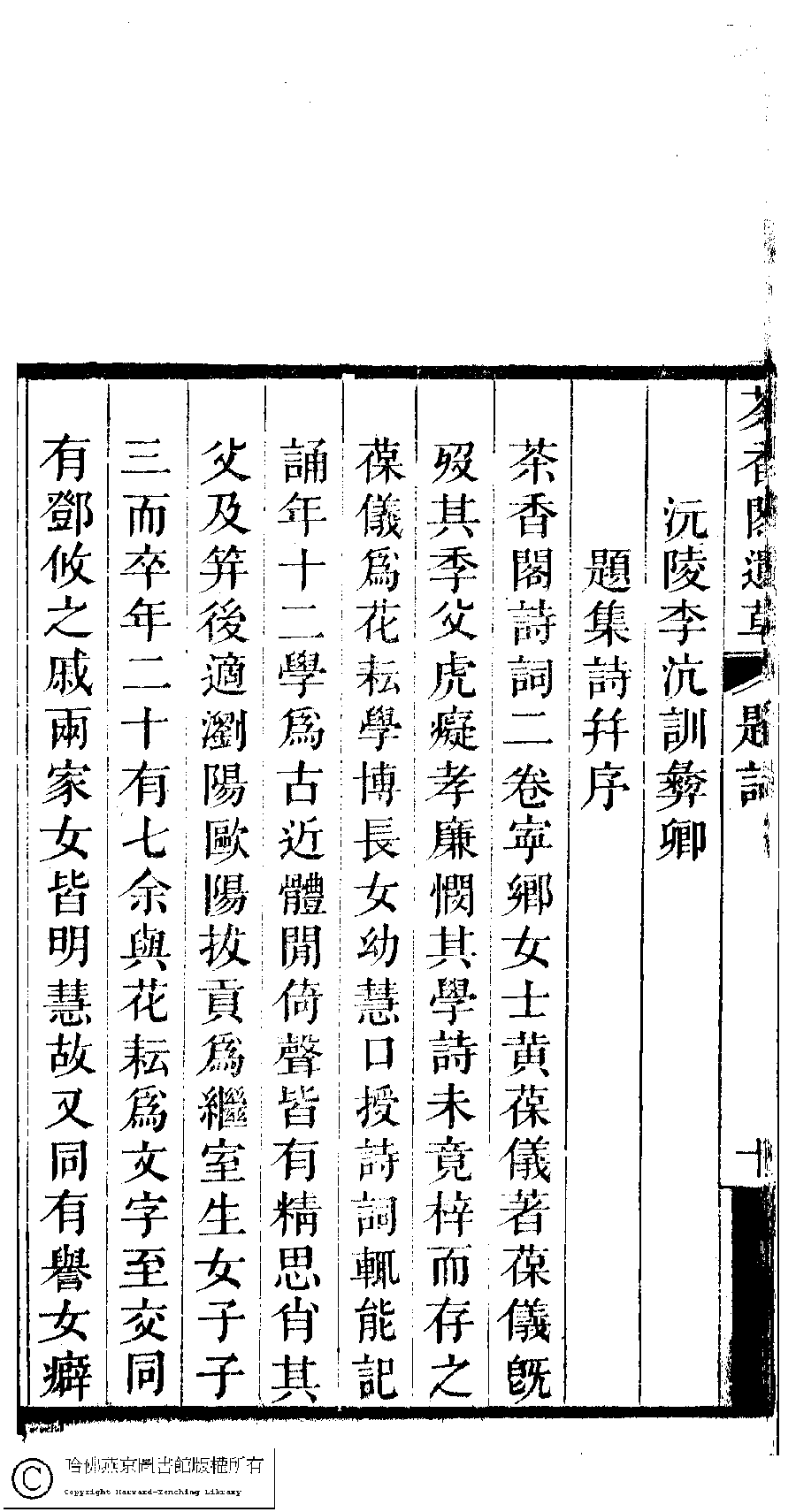 | (PRINT FRIENDLY VERSION) 茶香閣遺草﹕二卷(清黃婉璚撰)。清道光十年(1830)刻本。 ![]() Page : 題詞.12a | click for larger image | 茶香閣遺草﹕二卷(清黃婉璚撰)。清道光十年(1830)刻本。![]() Page : 題詞.11b | click for larger image | 茶香閣遺草﹕二卷(清黃婉璚撰)。清道光十年(1830)刻本。![]() Page : 題詞.11a | click for larger image | 茶香閣遺草﹕二卷(清黃婉璚撰)。清道光十年(1830)刻本。![]() Page : 題詞.10b | click for larger image | Back |