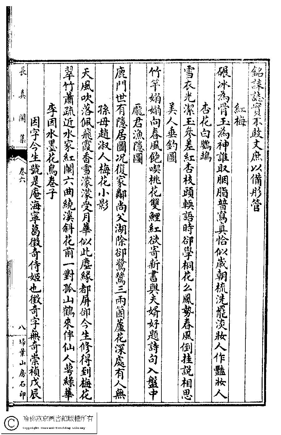 | Appears in: Chang zhen ge ji: 7 juan, shi yu 1 juan (by Xi Peilan, Qing dynasty) |