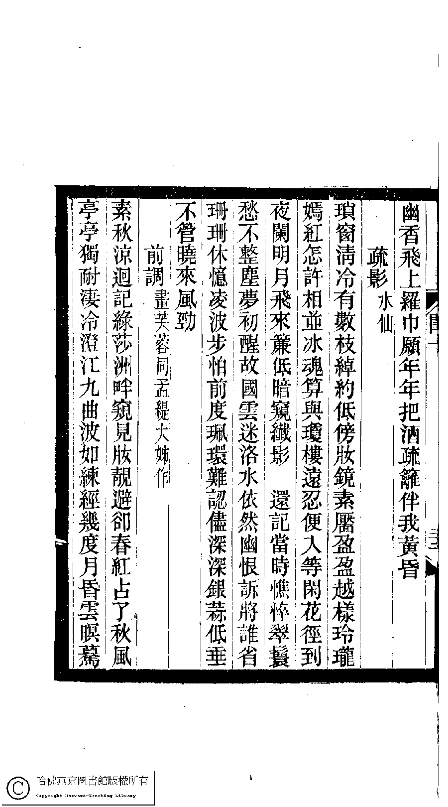 | (PRINT FRIENDLY VERSION) 閨秀詞鈔﹕十六卷(清徐乃昌輯)。清宣統元年(1909)小檀欒室刻本。 ![]() Page : 10.22b | click for larger image | Back |