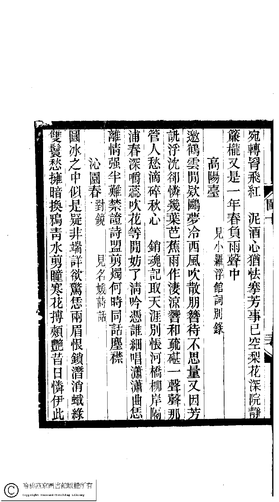 | (PRINT FRIENDLY VERSION) 閨秀詞鈔﹕十六卷(清徐乃昌輯)。清宣統元年(1909)小檀欒室刻本。 ![]() Page : 10.27b | click for larger image | Back |