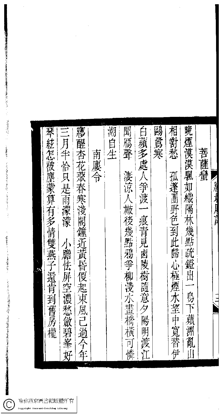 | Appears in: Xiao tan luan shi hui ke gui xiu ci: 10 ji 100 zhong 100 juan (edited by Xu Naichang, Qing dynasty): Meng ying lou ci: 1 juan |