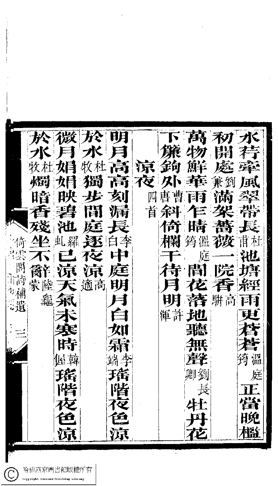| (PRINT FRIENDLY VERSION) 倚雲閣詩存﹕三卷﹐補遺﹕一卷﹐詩餘存﹕三卷(清張友書撰)。清光緒十二年(1886)刻本。 ![]() Page : 補遺.3b | click for larger image | 倚雲閣詩存﹕三卷﹐補遺﹕一卷﹐詩餘存﹕三卷(清張友書撰)。清光緒十二年(1886)刻本。![]() Page : 補遺.3a | click for larger image | Back |