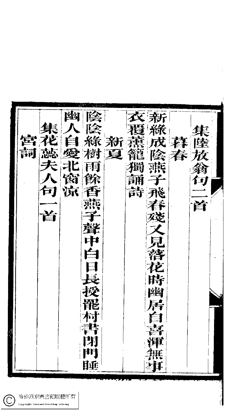 | (PRINT FRIENDLY VERSION) 倚雲閣詩存﹕三卷﹐補遺﹕一卷﹐詩餘存﹕三卷(清張友書撰)。清光緒十二年(1886)刻本。 ![]() Page : 補遺.4b | click for larger image | Back |