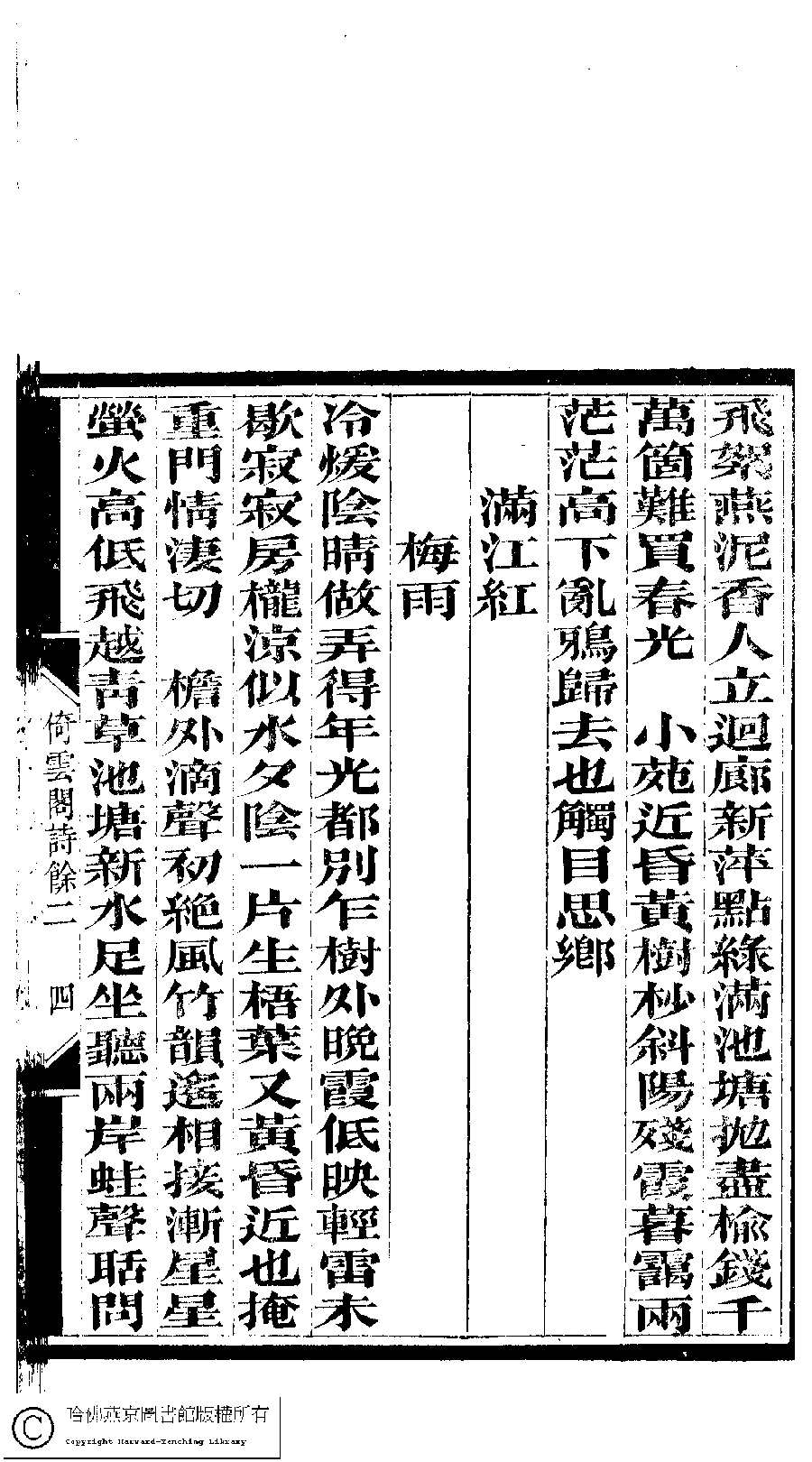 | (PRINT FRIENDLY VERSION) 倚雲閣詩存﹕三卷﹐補遺﹕一卷﹐詩餘存﹕三卷(清張友書撰)。清光緒十二年(1886)刻本。 ![]() Page : 詩餘.2.4a | click for larger image | 倚雲閣詩存﹕三卷﹐補遺﹕一卷﹐詩餘存﹕三卷(清張友書撰)。清光緒十二年(1886)刻本。![]() Page : 詩餘.2.3b | click for larger image | Back |