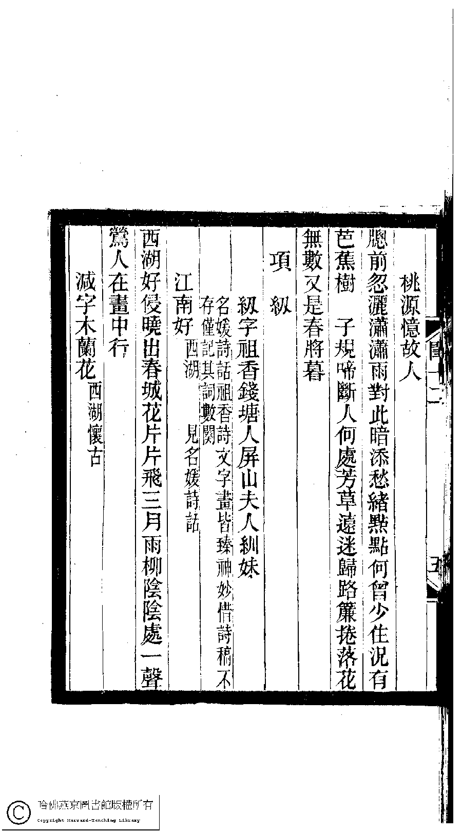 | (PRINT FRIENDLY VERSION) 閨秀詞鈔﹕十六卷(清徐乃昌輯)。清宣統元年(1909)小檀欒室刻本。 ![]() Page : 12.5b | click for larger image | Back |