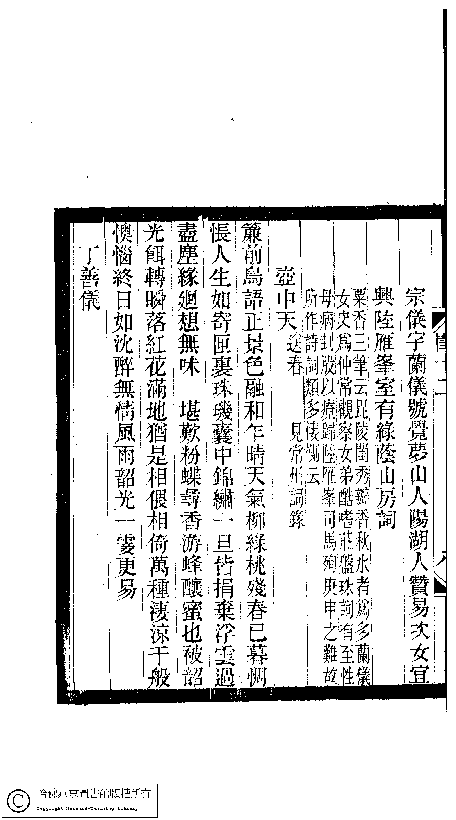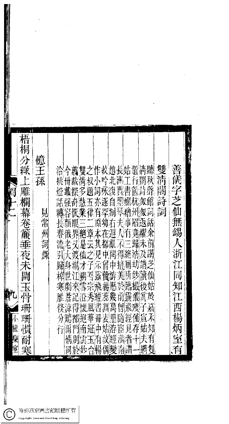 | (PRINT FRIENDLY VERSION) 閨秀詞鈔﹕十六卷(清徐乃昌輯)。清宣統元年(1909)小檀欒室刻本。 ![]() Page : 12.9a | click for larger image | 閨秀詞鈔﹕十六卷(清徐乃昌輯)。清宣統元年(1909)小檀欒室刻本。![]() Page : 12.8b | click for larger image | Back |