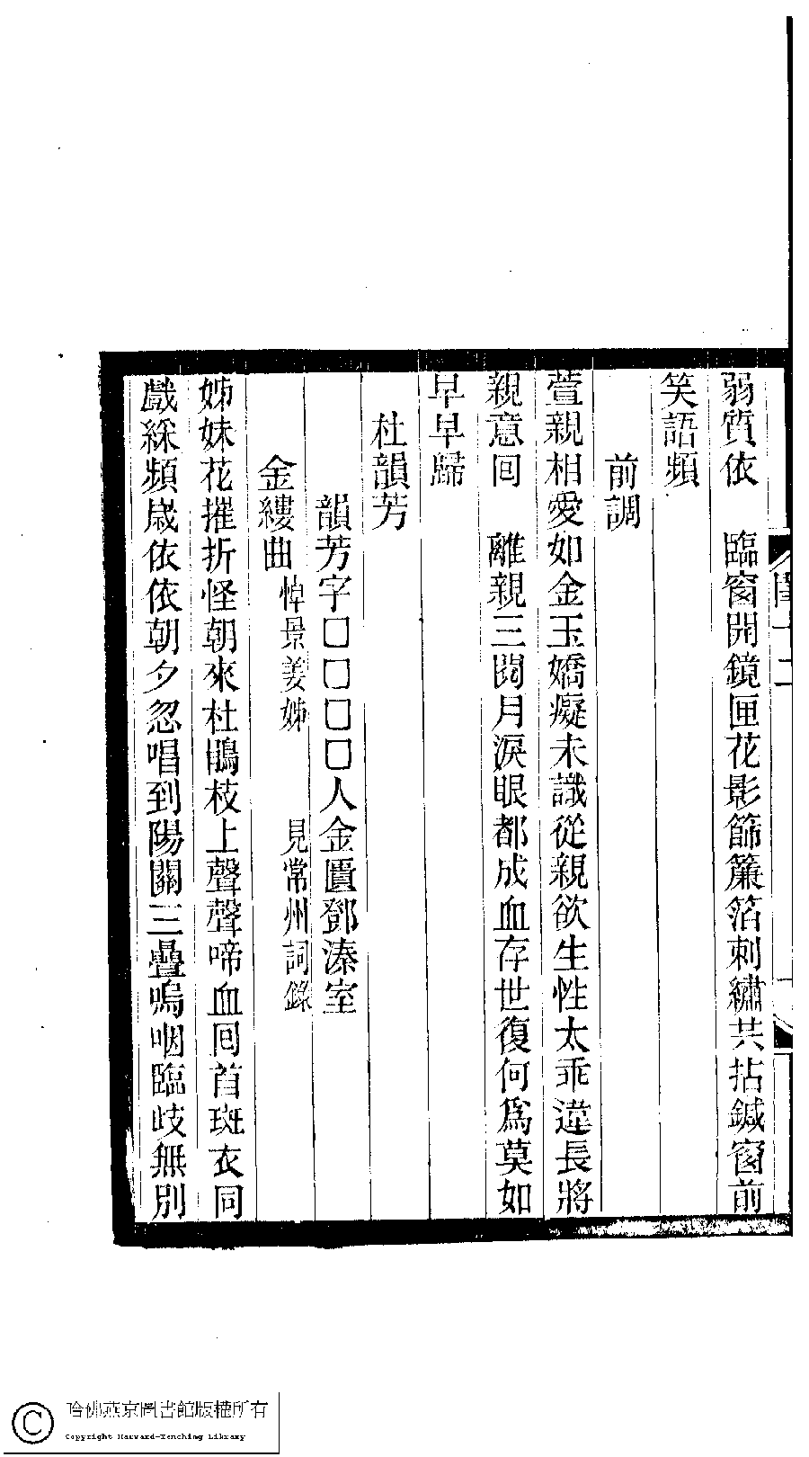 | (PRINT FRIENDLY VERSION) 閨秀詞鈔﹕十六卷(清徐乃昌輯)。清宣統元年(1909)小檀欒室刻本。 ![]() Page : 12.10b | click for larger image | Back |