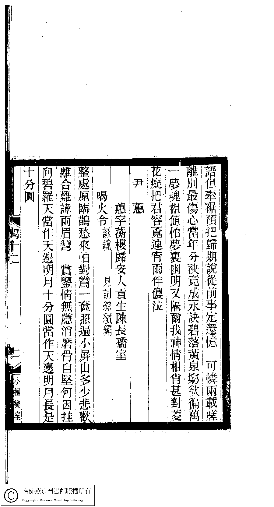 | (PRINT FRIENDLY VERSION) 閨秀詞鈔﹕十六卷(清徐乃昌輯)。清宣統元年(1909)小檀欒室刻本。 ![]() Page : 12.11a | click for larger image | Back |
