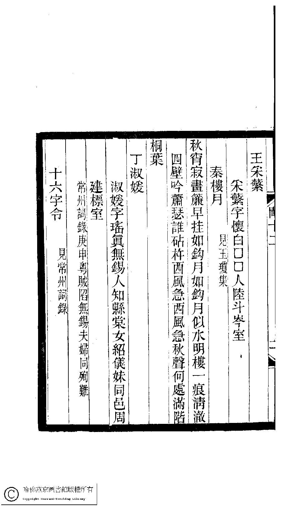 | (PRINT FRIENDLY VERSION) 閨秀詞鈔﹕十六卷(清徐乃昌輯)。清宣統元年(1909)小檀欒室刻本。 ![]() Page : 12.11b | click for larger image | Back |