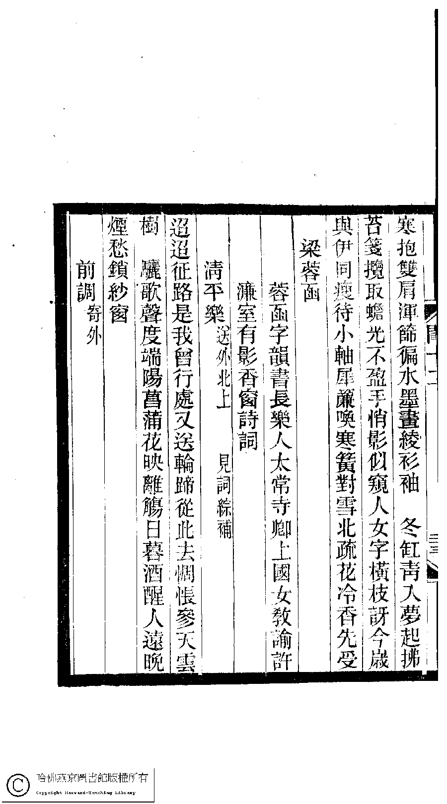 | (PRINT FRIENDLY VERSION) 閨秀詞鈔﹕十六卷(清徐乃昌輯)。清宣統元年(1909)小檀欒室刻本。 ![]() Page : 12.23b | click for larger image | Back |